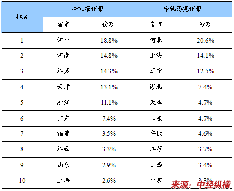 2011年中国自行车链条原料冷轧钢带生产省市排名