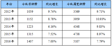 2012-2016年中国自行车链条原料冷轧钢带产量预测