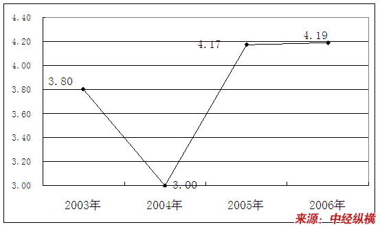 2003-2006年我国洗碗机业应收帐款周转率
