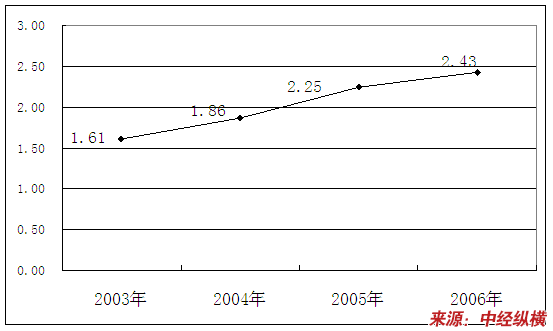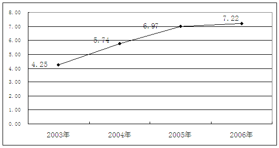 2003-2006年我国洗碗机业总资产周转率