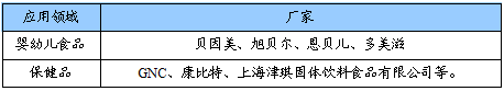 (1)婴幼儿食品:左旋肉碱属条件性婴儿必须营养物质,世界目前已有22个国家在婴幼儿奶粉中加入了左旋肉碱,如、旭贝尔。我国也已有添加左旋肉碱母乳化奶粉上市,如贝因美。