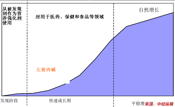 从产品生命周期角度考虑,左旋肉碱正处于快速成长期,预计至少还有5年的成长空间,预计到2013年以后市场进入平稳增长期,产品平稳发展,而这一时期将持续10年之久。