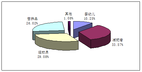 左旋肉碱产品目前的主要消费群体为减肥群体,其次为运动员,占到39.08%,另外作为营养品其在医药领域的消费达到了26.02%,也占到了相当高的比例。而作为婴幼儿食品的消费仅占到11.33%。这主要是因为左旋肉碱消费对于大多数人来说还是比较生僻的产品,市场对其了解程度不够,以至于其消费市场还未被完全发掘。