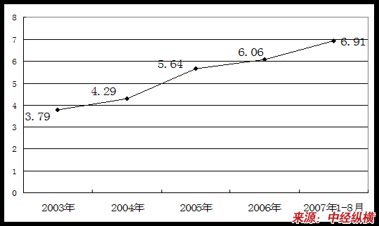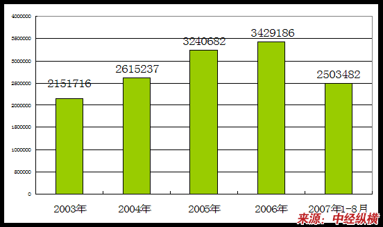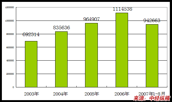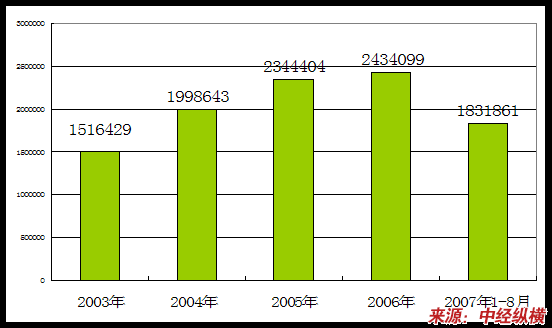 | 年份 | 2003年 | 2004年 | 2005年 | 2006年 | 2007年1-8月 |