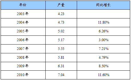 四、2003-2010年高效饲料脱毒剂产量情况 分析