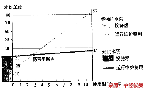 光伏水泵和柴油机水泵盈亏平衡点比较