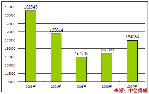 2003-2007年卷烟制造业从业人员数量状况