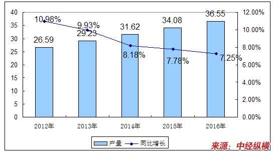 2012-2016年中国超细玻璃棉产量预测 单位:万吨