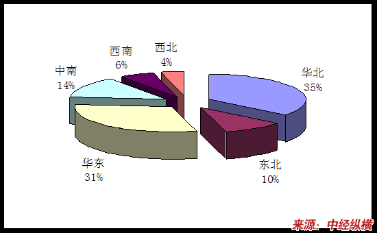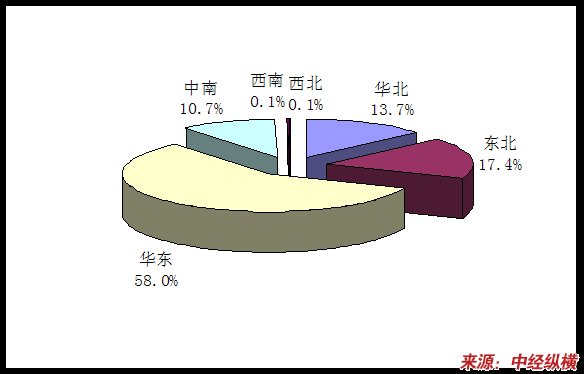 2011年我国钢坯连铸机用结晶器消费区域分布图