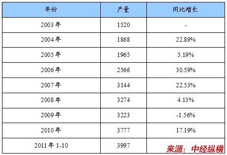三、2003-2011年钢坯连铸机用结晶器产品产量情况 分析