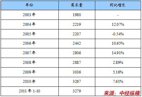 四、2003-2011年钢坯连铸机用结晶器产品需求情况 分析