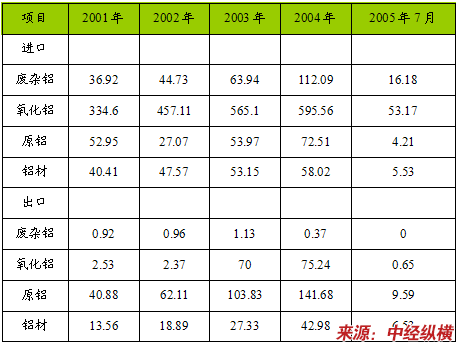上半年我国有色金属进出口额增长的主要原因是有色金属价格大幅度上涨。1-6月份进口额高于出口额,但增幅出口大于进口,进出口贸易逆差为68.17亿美元,比去年同期略有增长。