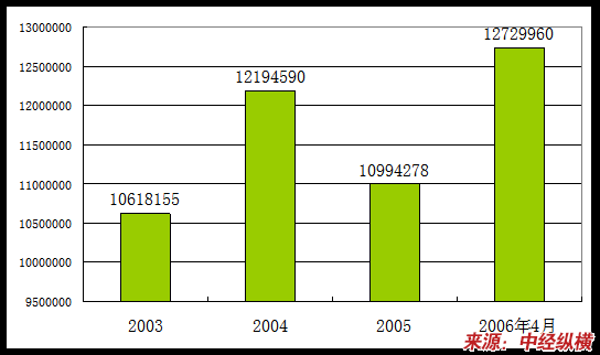 | 2006年1-4月 | 12729960 | 878794 | 2534675 | 9316491 |