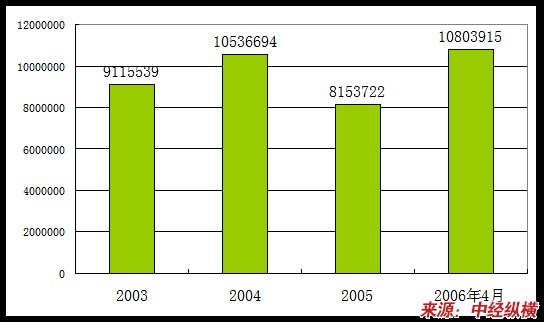 | 2006年1-4月 | 12729960 | 4198768 | 6362574 | 2168619 |