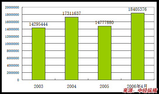 | 2006年1-4月 | 18405376 | 1404338 | 3575546 | 13425492 |