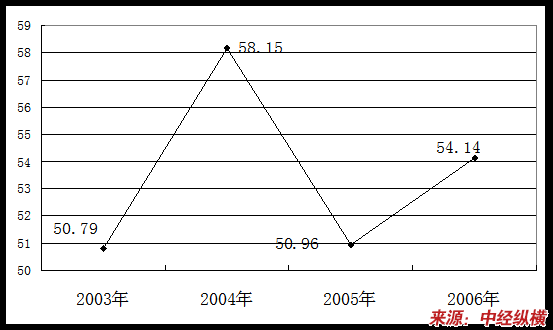 第六节 2003-2006年光纤、光缆制造业资产负债率 分析