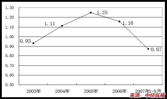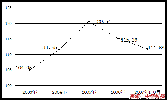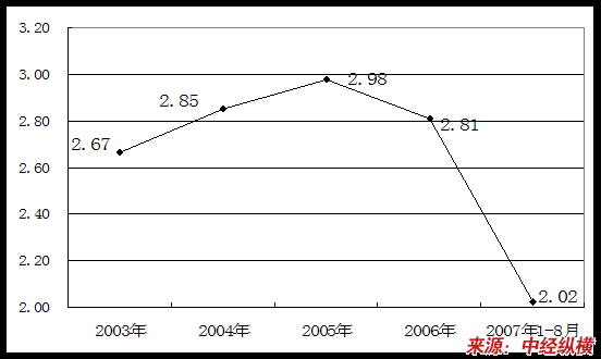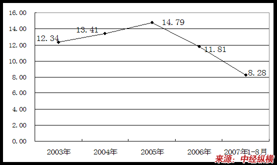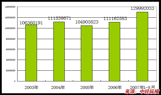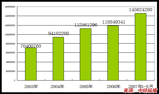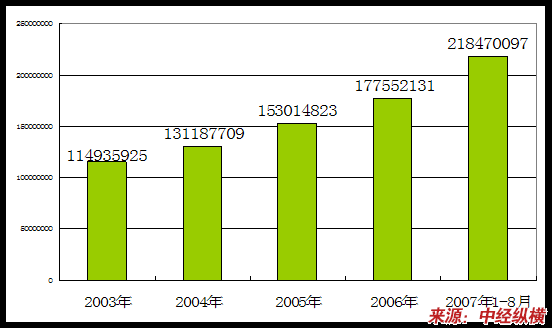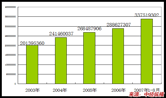 | 年份 | 2003年 | 2004年 | 2005年 | 2006年 | 2007年1-8月 |