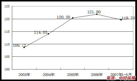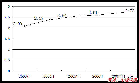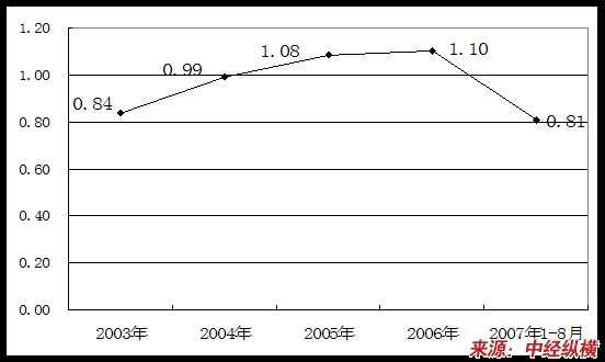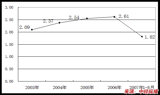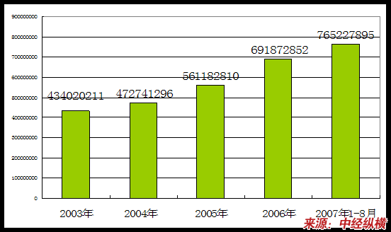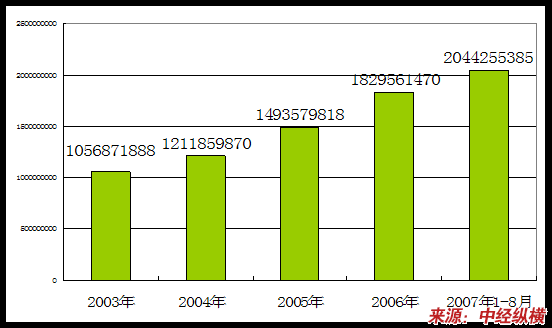 | 年份 | 2003年 | 2004年 | 2005年 | 2006年 | 2007年1-8月 |