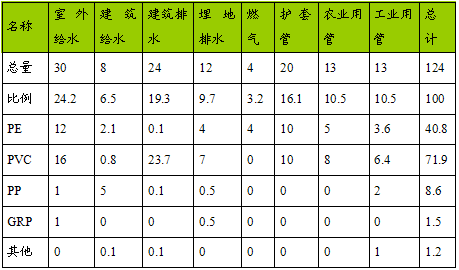 中国各种塑料管在各个市场领域的分布
