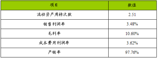 从各项经济指标来看,2005年规模以上纺织工业流动资产周转率达2.51,同比提高0.07次;销售利润率达到3.48%,同比提高0.29个百分点;销售毛利率为10.60%,同比提高0.06个百分点;成本费用利润率为3.62%,同比提高0.17个百分点;全员劳动生产率从去年的44600元/人提高到51099元/人,提高了14.57%,增长速度是近年来最快的。