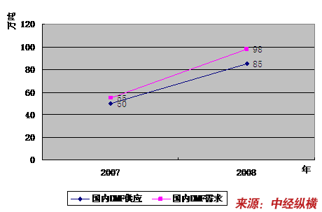 由于2008年6月甲醇经历价格快速下跌,预期DMF工厂生产利润空间扩大。7月底起,部分厂家逐步提高开工率:河南安阳07年8月投产的12万吨/年的DMF装置开车,河南骏化3万吨DMF装置在检修1个多月后恢复生产,供应量将增加,DMF市场前景不明朗