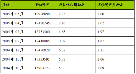 2005年5月塑料制品业 行业 流动资产总额为19,926,898万元,与上一年同期相比增长21.19%。应收帐款净额为6,467,931万元,应收帐款周转率2.73次,流动资产周转率为2.06次。