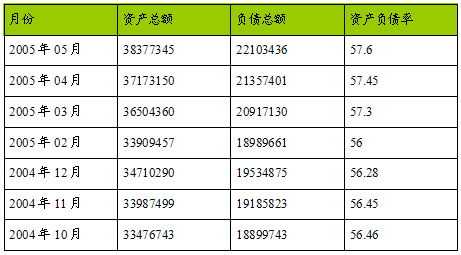 2005年5月塑料制品业 行业 资产负债率为57.6%,与上一年同期相比有所增长。其中资产总额38,377,345万元,负债总额22,103,436万元,本期 行业 产权比率为135.82%,比上一年同期增长7.73个百分点。其中所有者权益总额16,273,909万元,比上一年同期增长13.32%。