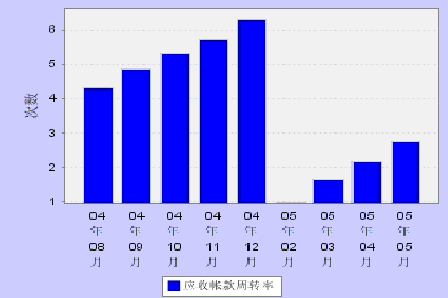 2005年5月塑料制品业 行业 总体的总资产周转率为0.45次,较上一年同期有所增长。流动资产周转率为2.06次,较上一年同期有所增长。其中平均流动资产为19,528,571万元,较上一年同期有所增长。销售收入为17,103,546万元,比上一年同期有所增长。