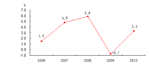 2006-2010年全部工业增加值及其增长速度
