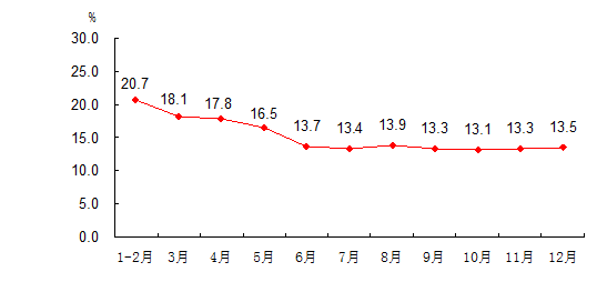 2010年规模以上工业增加值增长速度(月度同比)