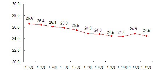 2010年城镇固定资产投资增长速度(累计同比) 单位:%