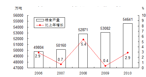 2006-2010年粮食产量及其增长速度