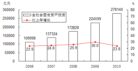 2006-2010年全社会固定资产投资及其增长速度