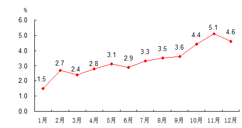 2010年居民消费价格涨跌幅度(月度同比)
