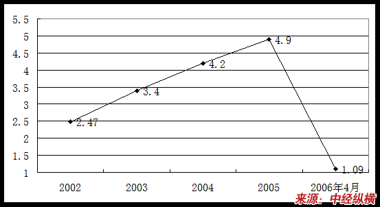 | 2006年1-4月 | 3.58 | 6.86 | 2.95 | 0.93 |