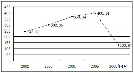| 2006年1-4月 | 133.67 | 256.21 | 110.04 | 34.77 |