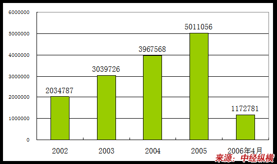 | 2006年1-4月 | 1172781 | 749290 | 321811 | 101680 |