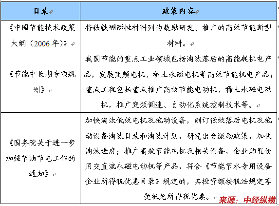 钕铁硼永磁材料作为下游 行业 的重要功能性材料,被广泛应用于节能环保领域,为节能环保 产业政策 重点鼓励发展的对象,具体情况如下: