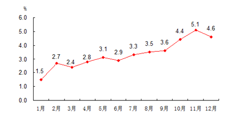 2010年居民消费价格一季度同比上涨2.2%,二季度上涨2.9%,三季度上涨3.5%,四季度上涨4.7%,全年平均比上年上涨3.3%,其中食品价格上涨7.2%。固定资产投资价格上涨3.6%。工业品出厂价格上涨5.5%。原材料、燃料、动力购进价格上涨9.6%。农产品生产价格上涨10.9%。