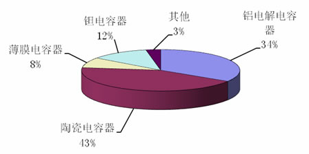 电容器主要用于电子方面,铝电解电容器、铌电容器、陶瓷电容器,薄膜电容器占整机电子元件用量。