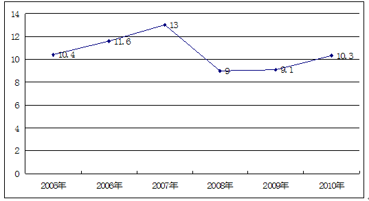 2005-2010年我国GDP增长率情况 单位:%