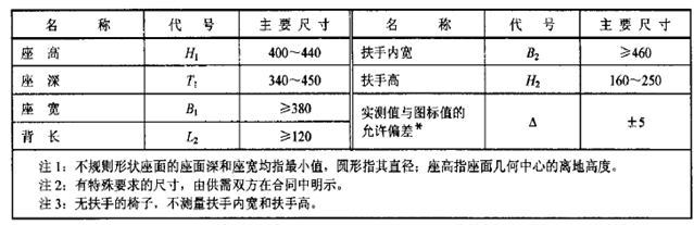体育场馆公共座椅主要尺寸、代号及偏差要求见表