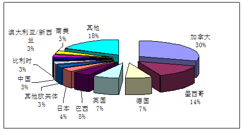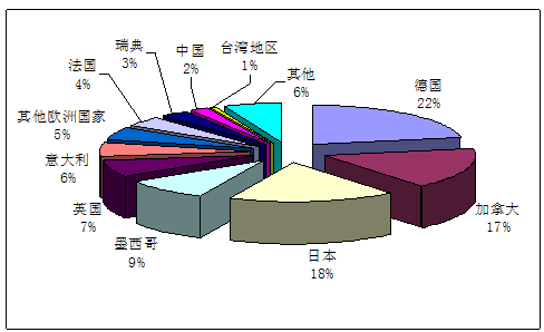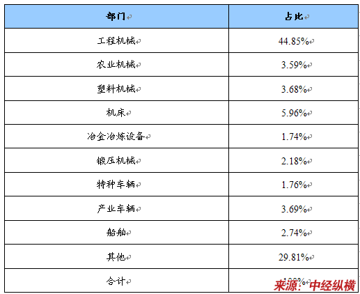 以日本为例,机械制造27%,电气电子7.3%,冶金和金属加工7.2%,运输2.2%,纺织2.1%。