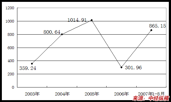 2003年-2007年1至8月合成材料制造业资本保值增值率最好水平