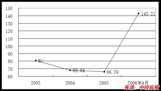 2003年-2006年4月香料、香精制造业人均销售率最好水平