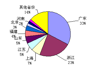 在alibaba买家分布中,广东、浙江、上海买家数占63%,其市场开发潜力巨大。所以厂家可以着重调查这三地买家的特定需求,生产适销对路的产品。