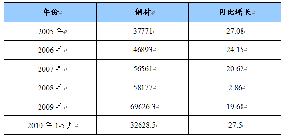 2005-2009年我国钢材产量 单位:万吨,%