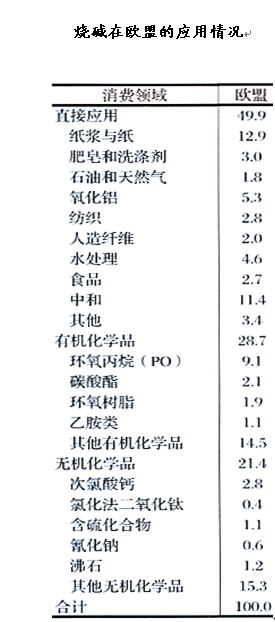 而欧盟在全世界烧碱需求中,所占比较较高,约为19.6%,2008年全球烧碱需求下降,主要原因是北美和欧盟需求下降所致。