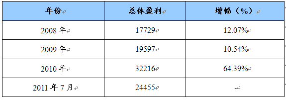 二、2008-2011年7月粗布 行业 总体盈利能力