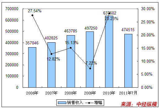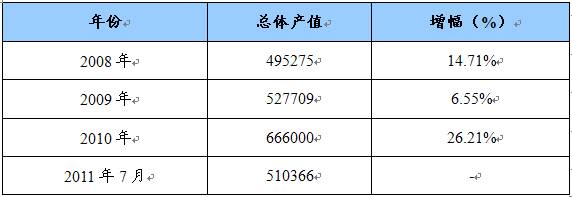 四、2008-2011年7月粗布 行业 市场总体产值能力